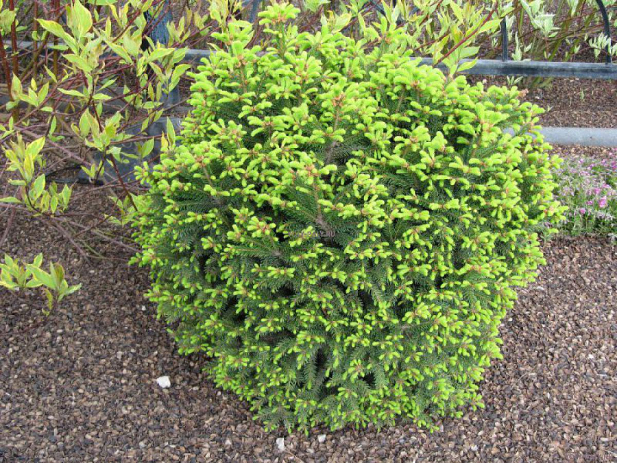 Саженцы ели обыкновенной Барри (Barryi) – необычный карликовый сорт, у отдельного деревца может развиваться несколько стволов и макушек крон. Молодые растения имеют шаровидную форму, по мере роста, вытягиваются в коническую. Ствол мощный; ветви крепкие, разрастаются вверх и в стороны. Крупномер вырастает до 3 м в высоту. Хвоя короткая, глянцевая. Наибольшую декоративность ель обыкновенная Барри приобретает весной, когда на фоне темно-зеленой хвои пробивается молодая зелень побегов. Достоинства: зимостойкость; теневыносливость; подходит для выращивания в контейнерах. Что нужно учесть: молодняк нуждается в укрывании от весеннего солнца; в засуху нуждается в поливе (при продолжительной засухе осыпается хвоя); из почвы предпочитает супесчаные и суглинистые.
