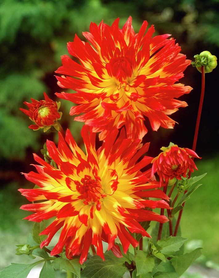 Погрузитесь в мир ярких красок и неповторимой красоты с георгиной полукактосовой Vuurvogel - растением, которое станет настоящим украшением вашего сада и принесет радость и восторг каждому, кто его увидит.
