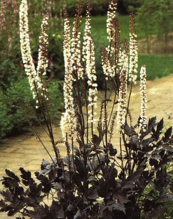 Рассада Клопогона ветвистого Brunette (Брюнет) вырастает в настоящее украшение вашего сада. Высота растения достигает четырех метров в высоту и служит прекрасным фоном для групповых посадок или естественным ограждением внутри сада. Цветки брюнета белые, они выделяются на фоне фиолетового основания и фиолетово-коричневого стебля, и именно этим это растение особенно любимо садоводами. Зацветает в конце лета, в начале осени. Ягоды его ядовиты. Лучше всего высаживать свежесобранные семена, тогда их всхожесть очень высокая.