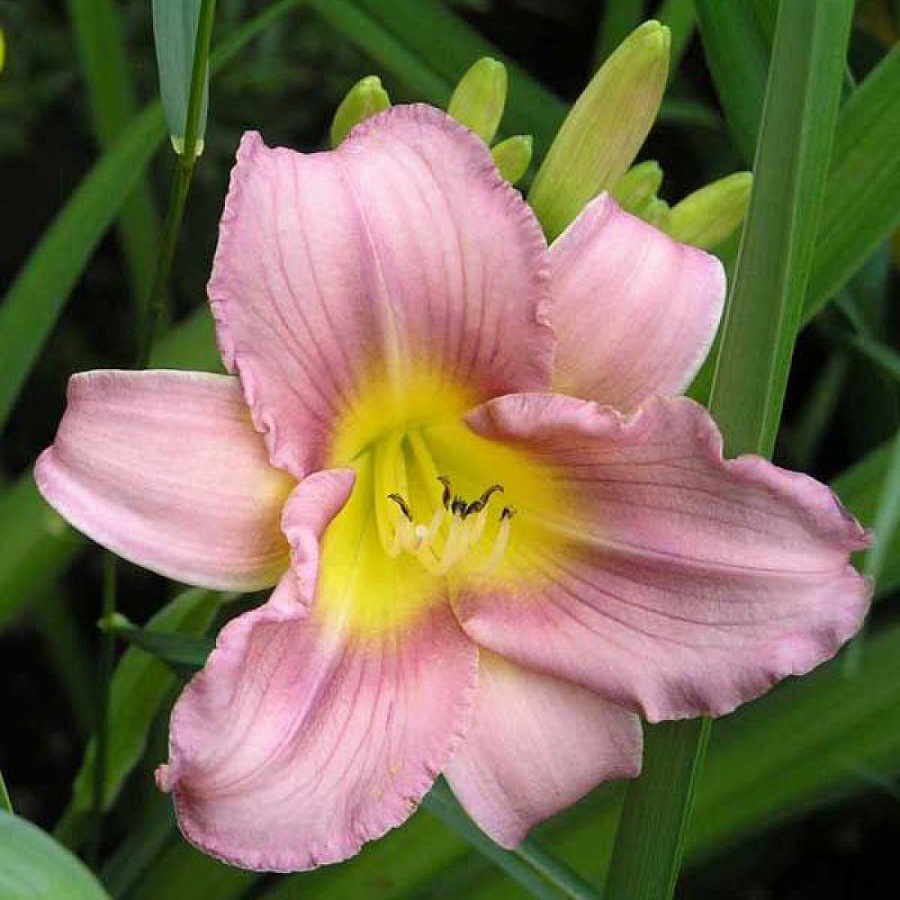 Рассада лилейника Литтл Феллоу (Little Fellow) – корневищный многолетник с цветоносами высотой до 45 см. Как правило, цветоносы выше листьев. При высадке цветов их рекомендуется размещать на открытом солнечном участке. Обильно и красиво куст цветет только при полноценном освещении. Цветки некрупные и достигают 8 – 10 см в диаметре, они розово-фиолетовые с темным окаймлением и желтой сердцевиной. При похолодании цветы приобретают синий оттенок. Сорт считается одним из самых выносливых и надежных. Не поддается различным заболеваниям и развивается ещё лучше при внесении в почву перегноя.