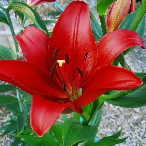 Луковицы Лилии ЛА-гибрид Коларес (Lilium LA-hybrids Colares) вырастут в гигантское растение, достигающее полутора метров в высоту. К выбору места для посадки нужно подходить осмысленно, высаживая лилию на заднем плане бордюров. Восхищения заслуживают направленные вверх цветки красно-кораллового цвета с редким крапом в центре. Лепестки слегка подкручены внутрь и имеют характерный глянцевый блеск. В контрасте с изумрудно-зелеными листьями лилия смотрится ещё роскошнее. Помимо впечатляющей красоты, Коларес источает сильный сладкий аромат. Каждое растение с множеством цветов на одном стебле ― это готовый букет на садовом участке.