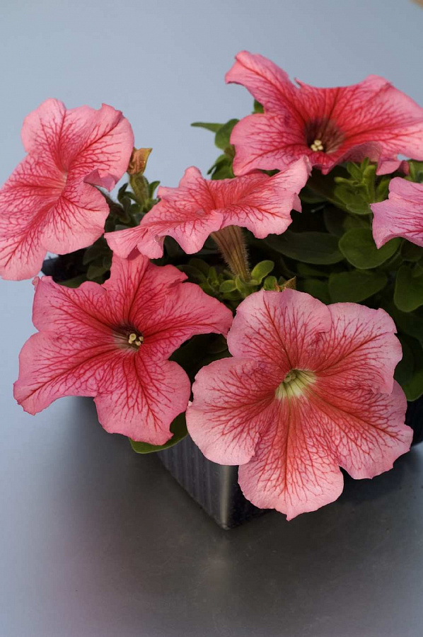 Петуния грандифлора лимбо джи пи    ред вейнед - это изысканное растение с лососевыми цветками, которое поразит вас своей красотой и изяществом. Ее стебель прочный, а размеры достигают 15-20 см в высоту и 8-12 см в диаметре. Листья петунии имеют форму, напоминающую сердце, что добавляет ей очарования.