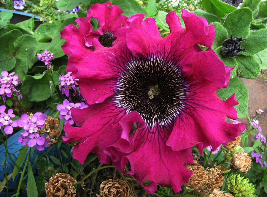 Это растение любит солнечные места, поэтому выберите для него яркое место в саду. Петуния превосходнейшая бордовая не требует сложного ухода: достаточно регулярного полива и удобрений для плодородных почв. Она морозостойкая и цветет с мая по июль, радуя вас своими яркими цветами.